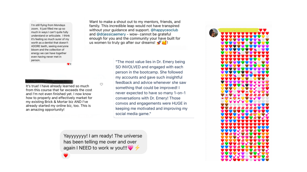 Get live, high-touch support every week with Dr. Jessica Emery. These sessions blend strategy and energetics, think hot seats, laser coaching, offer and messaging reviews, pricing/positioning tweaks and clear next steps so you leave with an action plan, not more to-dos. You’ll get real-time feedback, accountability and momentum alongside a powerhouse community.